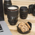 - Coffee mug designed to look like a realistic Nikon or Canon camera lens